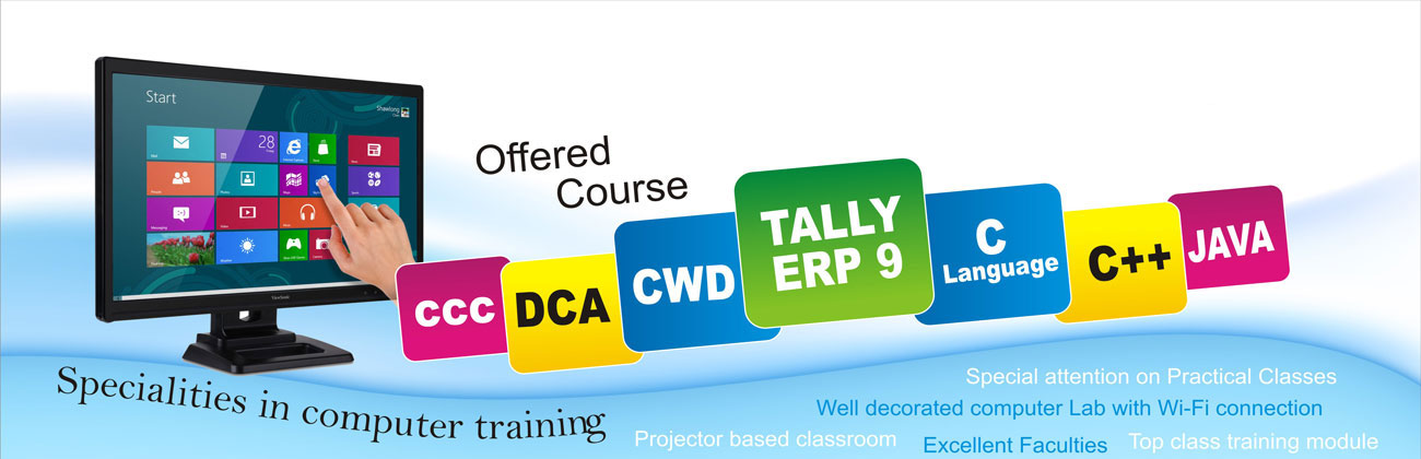 K.D.V. Computer is India's leading coaching institute for higher education. The institute offers more than 13 courses in over some of the prominent national level exams for which credible classes provides specialized education solutions are Tally, Photoshop, Corel draw, C++, C#, HTML, CSS, Java, My SQL, SQL Server , .Net, Internet, Dreamweaver etc.